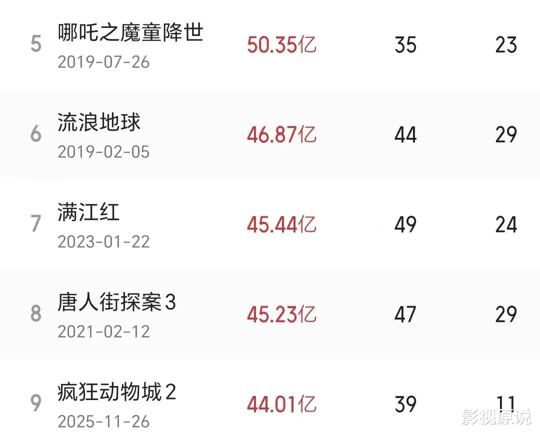 而碰巧的是,《哪吒2》的前作《哪吒之魔童降世》在我们中国内地本土市场的排名中,同样也是位居第五,这就好像是命中注定一样。