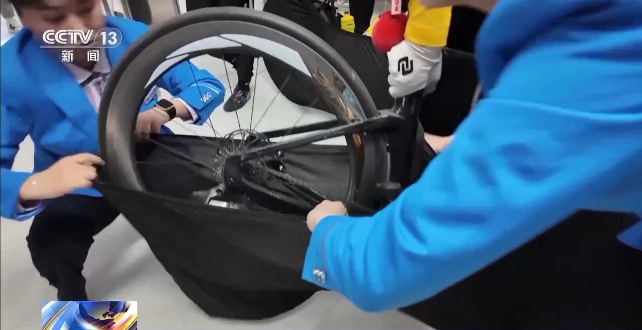 购票后,工作人员为自行车套上防护袋,通过安检进站。骑友可选坐列车前后两端的车厢,与自行车同车抵达。